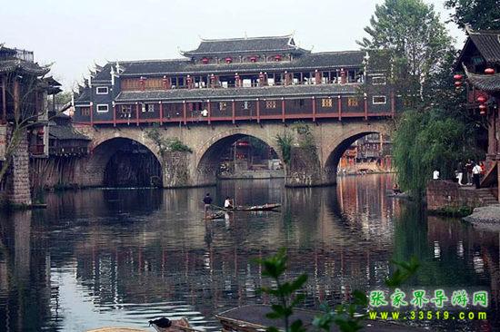 沱江河是古城鳳凰的母親河,她依著城墻緩緩流淌,世世代代哺育著古城兒女。坐上烏蓬船,聽(tīng)著艄公的號(hào)子,看著兩岸已有百年歷史的土家吊腳樓,別有一番韻味。順?biāo)拢┻^(guò)虹橋一幅江南水鄉(xiāng)的畫(huà)卷便展現(xiàn)于眼前:萬(wàn)壽宮、萬(wàn)名塔、奪翠樓……一種遠(yuǎn)離塵世的感覺(jué)悠然而生。沱江的南岸是古城墻,用紫紅沙石砌成,典雅不失雄偉。城墻有東、北兩座城樓,久經(jīng)滄桑,依然壯觀。