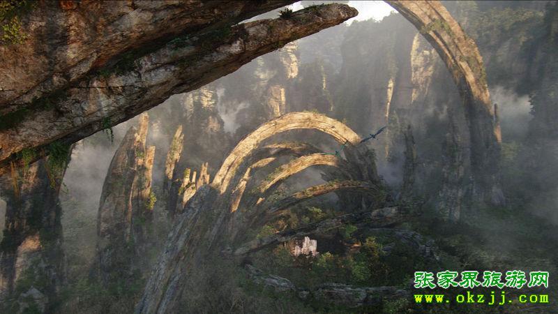 巍巍群山漂浮在天空,云霧繚繞,美麗壯觀……這是電影《阿凡達(dá)》中的經(jīng)典場景。阿凡達(dá)的全球熱映使人們對(duì)這部電影充滿了驚嘆和好奇,而這部影片奇幻的拍攝地到底是在哪里這一問題也引發(fā)了影片熱愛者的紛紛推測。導(dǎo)演卡梅隆的一句“中國元素給《阿凡達(dá)》大大增色”不僅勾起了旅游愛好者的向往之心,更是引發(fā)了一場不小的爭論。片中美輪美奐的“哈利路亞山”讓人驚嘆向往,現(xiàn)實(shí)版的“哈利路亞山”到底是以黃山還是張家界的武陵源為背景,成了網(wǎng)友和旅游界的熱議焦點(diǎn)。“第42秒出現(xiàn)過張家界的南天一柱,第33分21秒出現(xiàn)過黃石寨的玉屏峰,第55分53秒出現(xiàn)過寶峰湖的瀑布……”在網(wǎng)上,有發(fā)帖者將這些在《阿凡達(dá)》影片中出現(xiàn)過的張家界景致一一羅列。通過慢放發(fā)現(xiàn),影片中大概有25分鐘完全是張家界的山水風(fēng)光。出現(xiàn)多次的是黃石寨前山的南天一柱,金鞭溪的劈山救母出現(xiàn)不低于5次,然而出現(xiàn)最多的還是寶峰湖瀑布和袁家界迷魂臺(tái)里面的擎天柱。而張家界和黃山的最大區(qū)別是黃山是花崗巖地貌,上面非常光滑,幾乎沒有植被,而張家界是石英砂巖地貌,上面植被覆蓋非常茂盛。