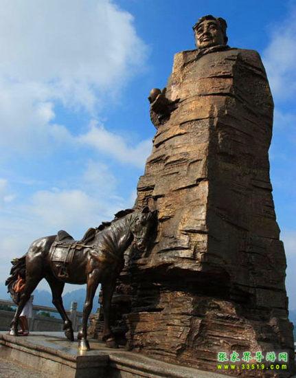 賀龍元帥高大的身軀是不是就像張家界石英紗巖山峰一樣?是的,張家界“峰三千,水八百”,所有奇特的山峰加起來才二千九百九十九座,加上賀龍元帥這一座剛好三千座,這象征著賀龍元帥與張家界青山綠水同在,與張家界日月同輝。