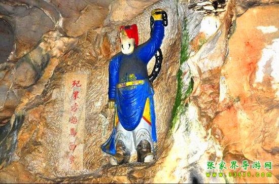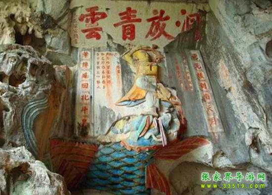 玉皇洞石窟位于張家界城西約7公里的麻空山南壁,為清代本地鄉(xiāng)紳李京開獨資捐修。李京開又叫李五瑞,別名九洞樂,號識破生。他生于乾隆七年(公元1742年),道光乙酉年(1825年)去世,享年83歲。李先生家道殷實,富甲一方。少時勤奮讀書,頗有才華,數(shù)十年奔波仕途,但屢試不第,官場無望,于是看破紅塵,另尋安慰,請工匠,耗巨資,憑借麻空山天然溶洞,按上、中、下方位布局,巧妙構(gòu)思,開鑿成“天堂”、“人間”、“地府”三層共八個洞。另外,在離此約3公里的峰泉洞另鑿一洞,故有“九洞樂”別名。玉皇洞石窟上層為玉皇洞,人間層有玉金洞、毫筆洞、墨池洞、虎龍洞、雄獅洞、孔圣洞,地府為因果洞,八洞組成一個完整的混沌世界。居八洞之首的玉皇洞,雕有玉皇大帝神像,意為“天堂”至尊,統(tǒng)帥中層的“人間”和下層的“地府”,故八洞統(tǒng)稱玉皇洞。此洞于1799年動工,到1807年完成,歷時八年。洞內(nèi)雕鑿了一些歷史人物的神像以及大量詩詞匾對,不僅石雕精湛獨特,雕像神韻生動,書法遒勁大氣,而且在石窟藝術(shù)的主題構(gòu)思上,抒發(fā)了主持捐修者李京開懷才不遇、憤世疾俗、向往太平盛世的情感,鞭達了腐朽的科舉制度,對于研究清代社會和科舉制度,以及當時一般讀書人的思想情感,都具有一定的史料價值。整座洞窟東西長300余米,現(xiàn)存石像19尊,石刻50多處,是湖南省唯一保存完好的石窟藝術(shù)群,1959年玉皇洞被列入湖南省重點文物保護單位。
