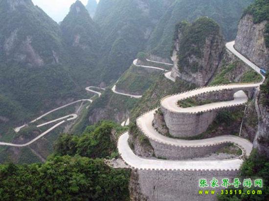 極具險(xiǎn)絕奇觀的天門山盤山公路——“通天大道”則是天門山的另一壯景。通天大道態(tài)勢(shì)險(xiǎn)絕,蕩氣回腸,更以蜿蜒迂回穿行于山體絕壁之天險(xiǎn)而“堪稱天下第一公路奇觀”。它全長(zhǎng)10.77公里 ,從標(biāo)志門直達(dá)天門洞腳下,海拔從200米急劇提升至1300米,共有九十九個(gè)彎,大道兩側(cè)絕壁千仞,空谷幽深,180度的急彎此消而彼長(zhǎng),層層疊起,中國(guó)書法協(xié)會(huì)常務(wù)副會(huì)長(zhǎng) 沈鵬 先生走過通天大道后欣然為其題字“曲道通天”,字體遒勁挺拔,與通天大道的奇絕天下相融為一體。
