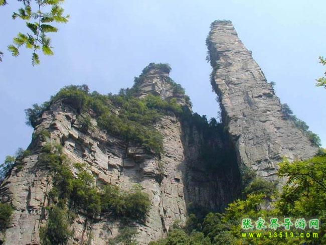 與金鞭巖隔溪對峙,矗立在斜坡上,高200余米。上下粗細(xì)一般,峰體渾圓,色赤,呈70度角向金鞭溪傾斜,形似醉酒羅漢,欲倒不倒,似醉非醉,詼諧幽默。清嘉慶學(xué)士彭之臣在峰壁書寫一“忠”字。清道光四年(1824),貢生彭之運(yùn)作《壁忠記》譯文以彰其勝。風(fēng)雨蒼桑,“忠”字因山石崩塌遭毀,《記》存于當(dāng)?shù)刂緯小?/p>