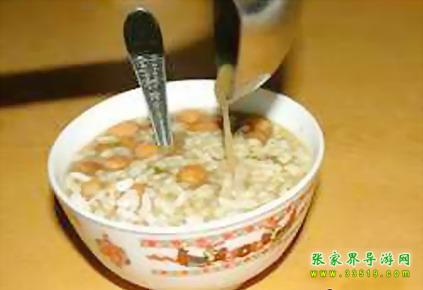 油茶湯對(duì)土家族人來(lái)說(shuō)一日三餐少不了。土家油茶湯是張家界土家族具有代表性的包含文化現(xiàn)象之一,土家語(yǔ)稱“色斯?jié)缮?rdquo;,堪稱中國(guó)茶文化一絕,源遠(yuǎn)流長(zhǎng)。據(jù)清代的古書記載:“土人以油炸黃豆,包谷,米花,綠焦諸物,取水和油,煮茶葉和湯泡之,餉客致敬,名曰:‘油茶’”。