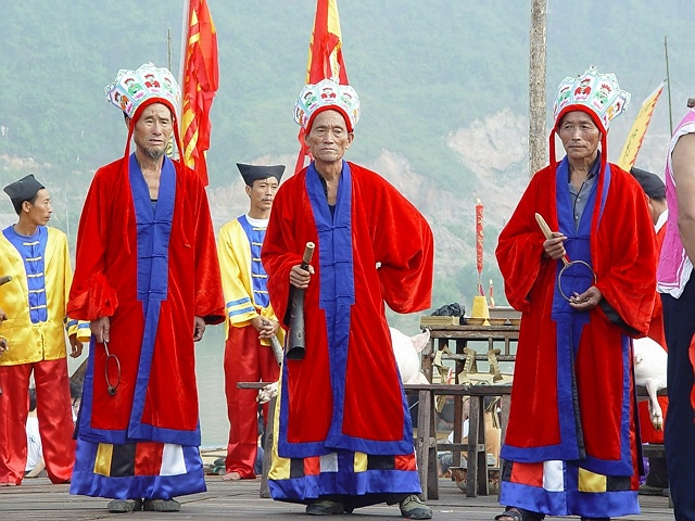 梯瑪俗稱土老司,意為敬神的人,土家族一年一度的“調(diào)年擺手”敬神祭祀活動(dòng),都由梯瑪一手執(zhí)掌,祭祀過(guò)程中梯瑪演唱的敬神之歌就叫“梯瑪神歌”。為真實(shí)演繹出湘西土家的神秘歷史,湘西幾位幸存的梯瑪大師、鬼谷神功的四十三代傳人、在歐美多次舉辦過(guò)演唱會(huì)的苗歌皇后龍仙娥,四上人民大會(huì)堂匯報(bào)演出的侗歌合唱團(tuán)以及土家蜘蛛人等一批民間藝人參與演出。200多名演職人員中,年齡最大的96歲,最小的3歲,由湘西地區(qū)原生態(tài)演員和群眾演員組成。