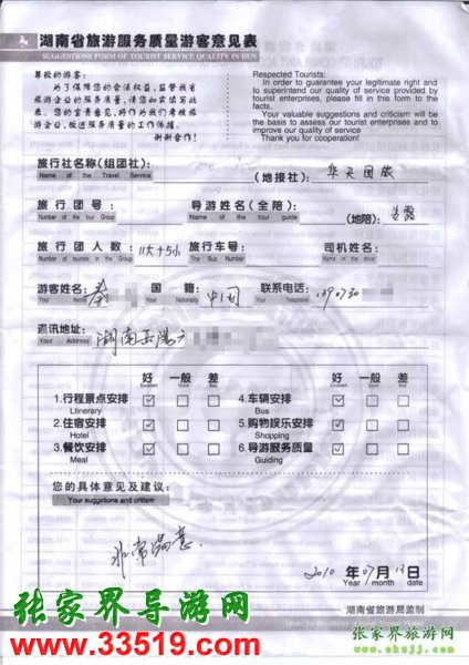 2010年7月13日岳陽(yáng)秦先生一行16位旅游質(zhì)量反饋