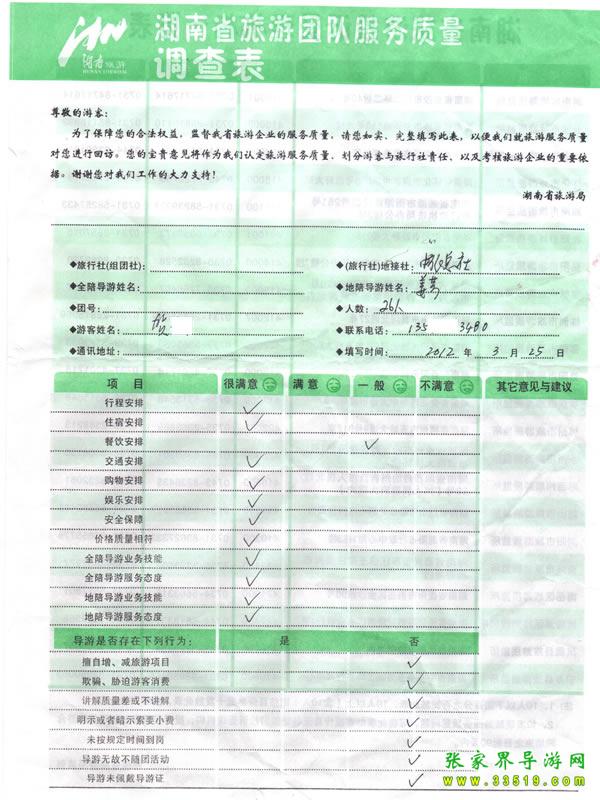 12年3月25日賀女士一行26人,對(duì)導(dǎo)游、行程、住宿、交通等方面都非常滿意
