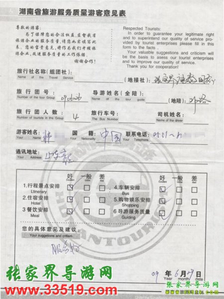 6月25日山東韓先生一行4人接待質(zhì)量反饋單: