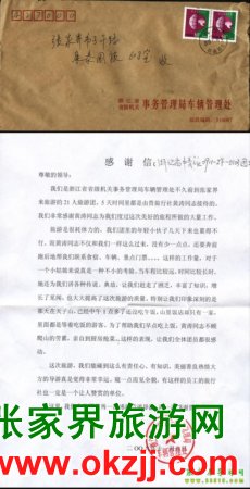 浙江省省級(jí)機(jī)關(guān)事務(wù)管理局車輛管理處致張家界康泰國(guó)旅導(dǎo)游黃濤感謝信