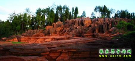 之前在張家界,那里的山形成于三億八千萬(wàn)年前,覺(jué)得特強(qiáng)大,現(xiàn)在到了紅石林,才知道什么叫時(shí)間不等人。紅石林正好處在張家界至湘西這條旅游黃金 走廊的中間位置。景區(qū)里有蜀犬吠日、乳燕待哺、蝸牛搬家、樓蘭古城、七彩迷宮等等,另還有地下溶洞,絕壁天坑,千年古木等,整個(gè)景區(qū)融紅、秀、峻、奇、 絕、古于一身,堪稱(chēng)“武陵第一奇觀”。